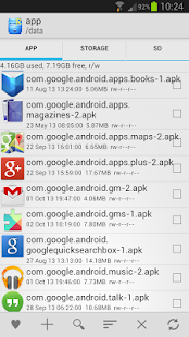 Features include multiple tabs, Google Drive, Box, Dropbox and network (SMB) support, SQLite database viewer, Text Editor, create and extract zip or tar/gzip files, extract rar archives, multi-select, execute scripts, search, remount, permissions, bookmarks, send files (via email, bluetooth etc), image thumbnails, APK binary XML viewer, change file owner/group, create symbolic link, "Open With" facility, MD5, create shortcuts.